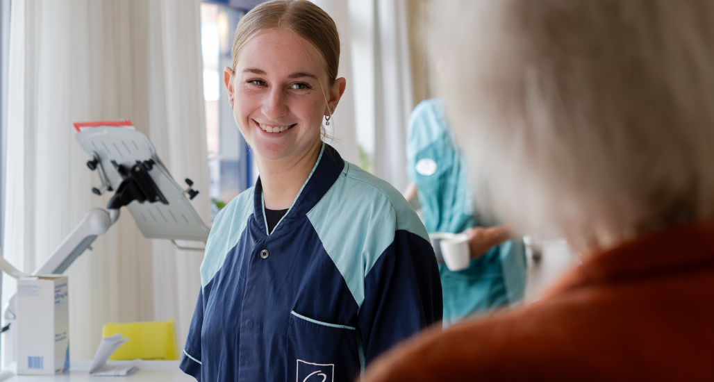 Wat Lieske het leukste vindt aan haar werk? “Gezelligheid opzoeken en een praatje maken met bewoners. Het zijn vaak kleine momenten, maar ze betekenen veel. Soms krijg je een compliment of een lach terug, en dan voel je dat je echt iets kunt betekenen.”